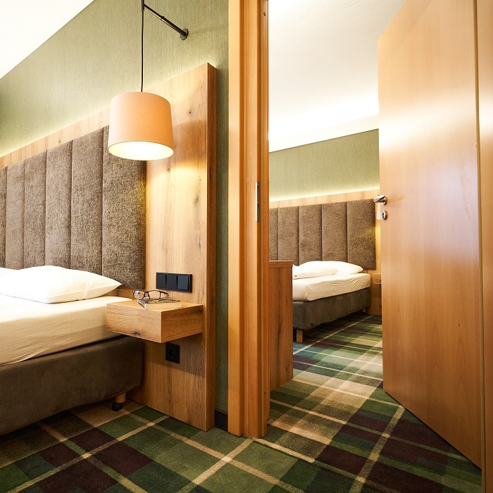 Und wenn Sie mit der ganzen Familie zu uns kommen möchten, bietet Ihnen unser großzügig geschnittenes und gemütlich eingerichtetes Familienzimmer mit Verbindungstür den idealen Raum für Ihren Urlaub. In unseren Drei-oder Vierbettzimmern hingegen können Gruppen Ihren Aufenthalt entspannt gestalten.